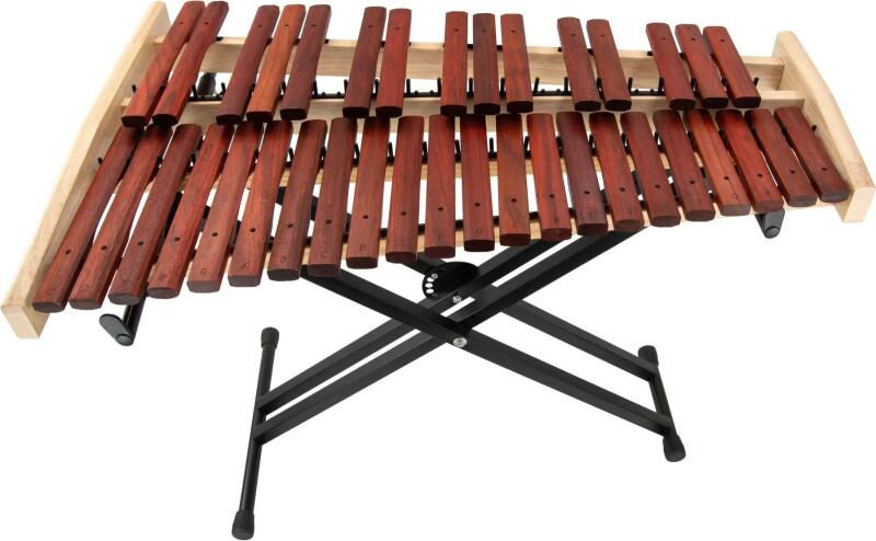 Termékleírás A Noicetone X009-2 professzionális asztali xilofon tökéletes választás minden zenész számára, aki kiváló minőségű hangzásra vágyik. Ez a 37 billentyűs, rózsafából készült xilofon három oktáv (C5-C8) terjedelemben elérhető, és A=442Hz hangmagassággal. A játékszerek biztonságos és stabil rendszerben vannak elhelyezve, mely favázas és rezonáns hátlappal rendelkezik, így minden hang tisztán és világosan hallható. A készlethez tartozik egy állítható X alakú dupla állvány, amely biztosítja a kényelmes játékélményt. A professzionális nylon végű alsócombak segítenek a megfelelő dinamikai teljesítmény elérésében, míg a párnázott fekete nylon táska megkönnyíti a szállítást és a tárolást. Specifikációk